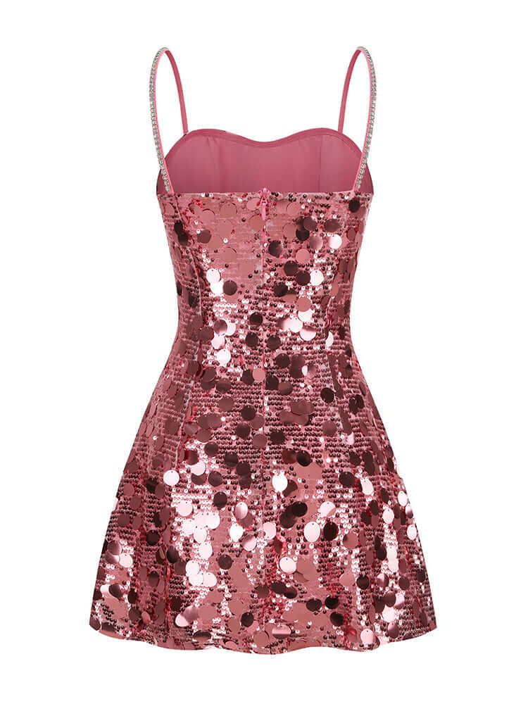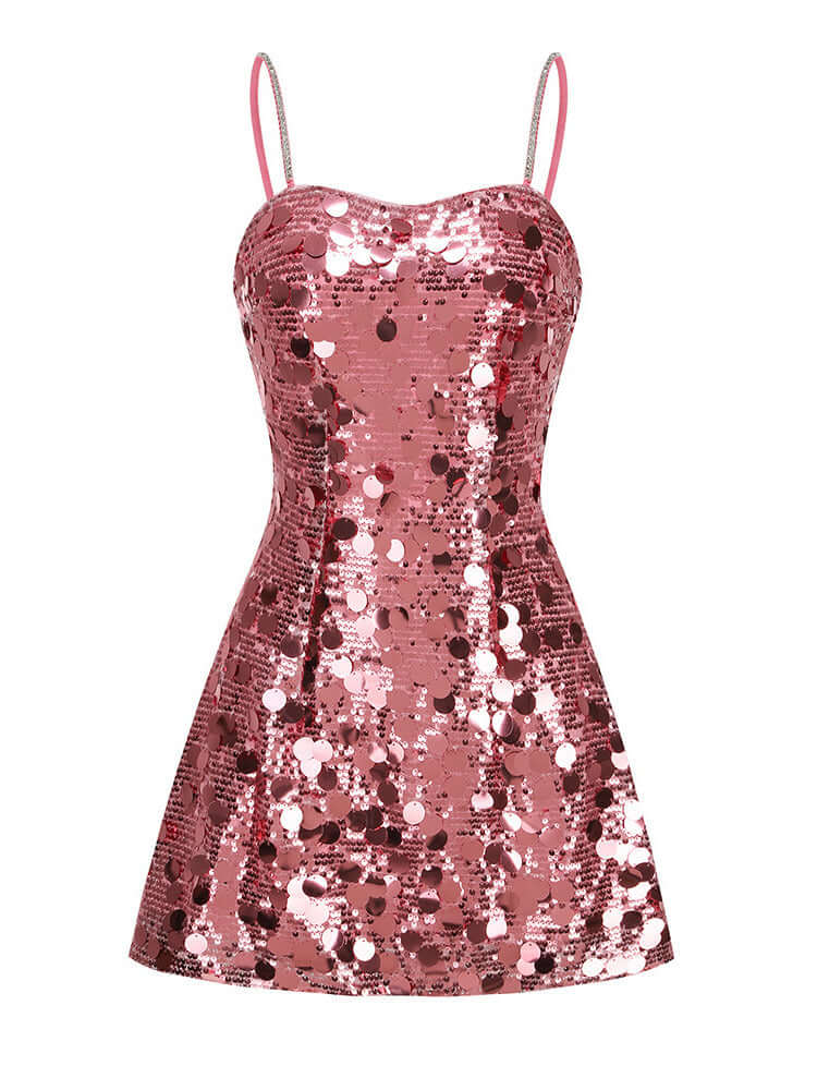 Pink Sequin Spaghetti Strap Mini Dress