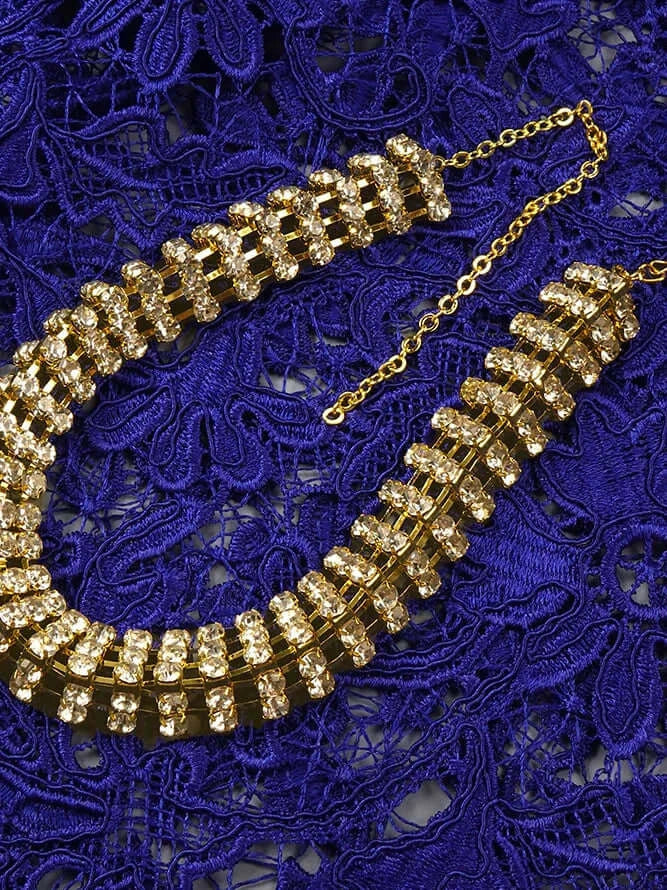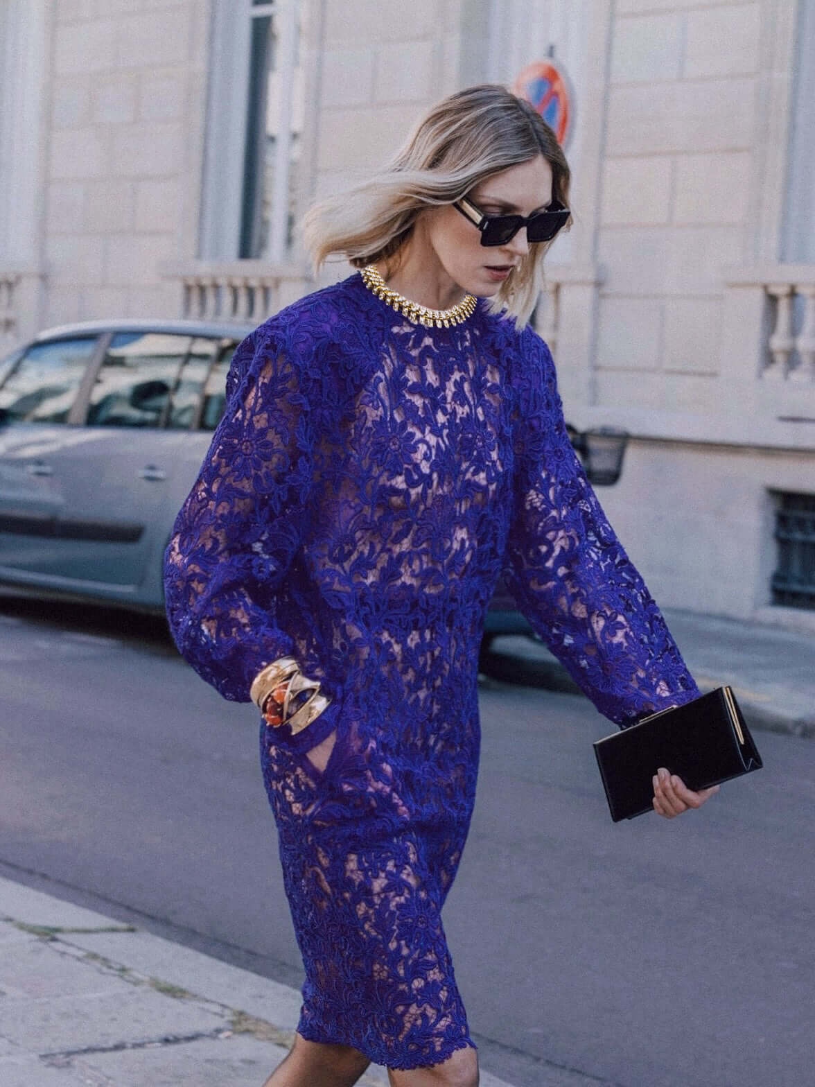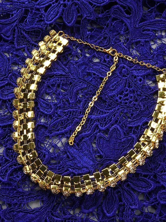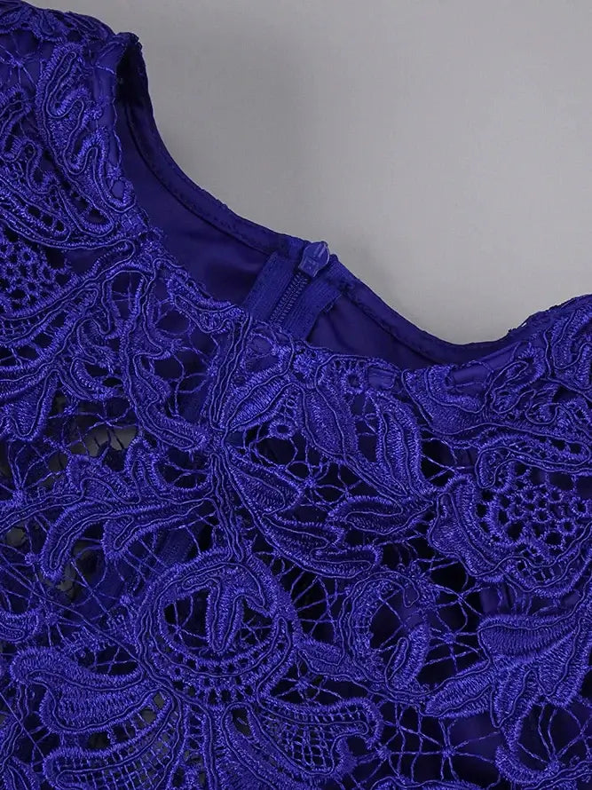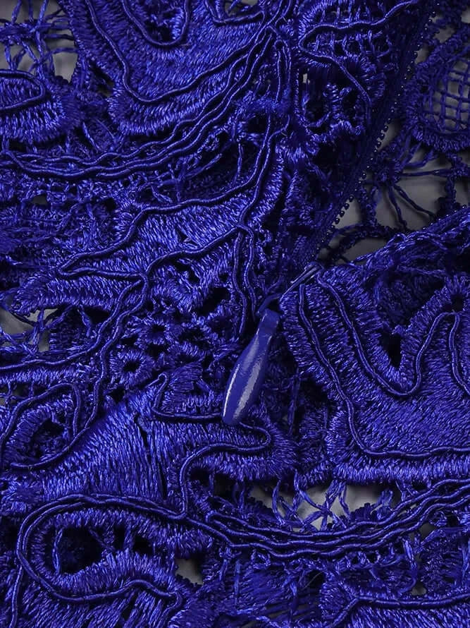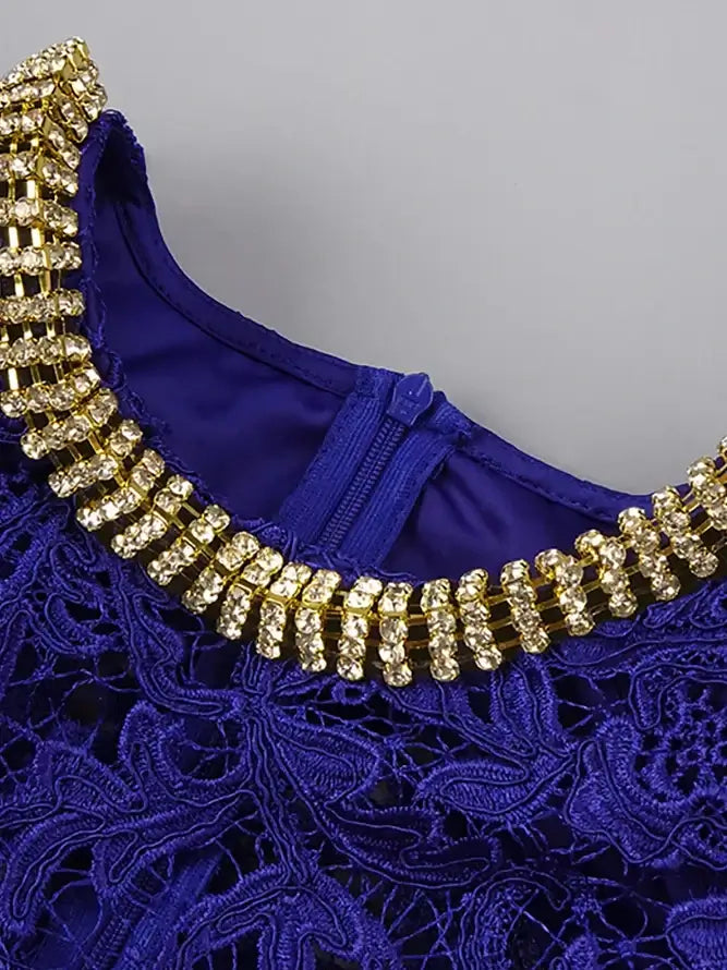 Royal Blue See Through Lace Dress with Gold Collar Detail