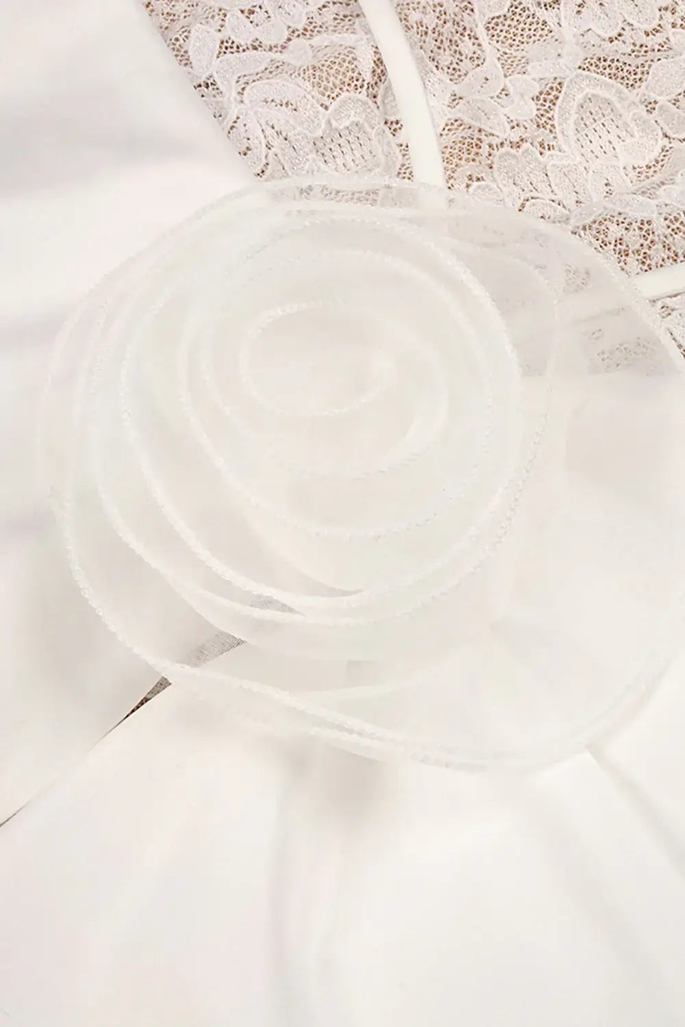 Elegant ivory lace dress with wrap waist detail outdoor setting