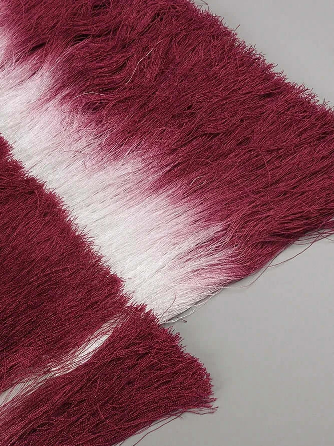 A stunning blend of vintage glamour and contemporary drama, the Camille Ombre Fringe Corset Gown is made to move with you — and stop traffic while doing it. The structured wine-colored corset top sculpts your waist and lifts your neckline, while the full-length tiered fringe skirt sways in cascading ombré layers from deep burgundy to crisp ivory.