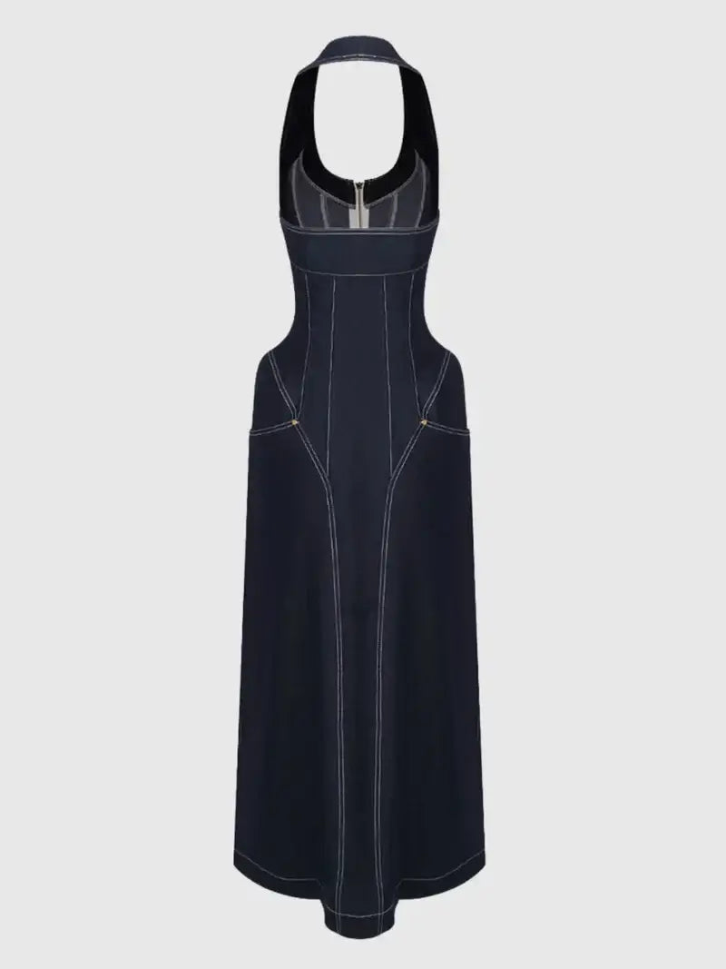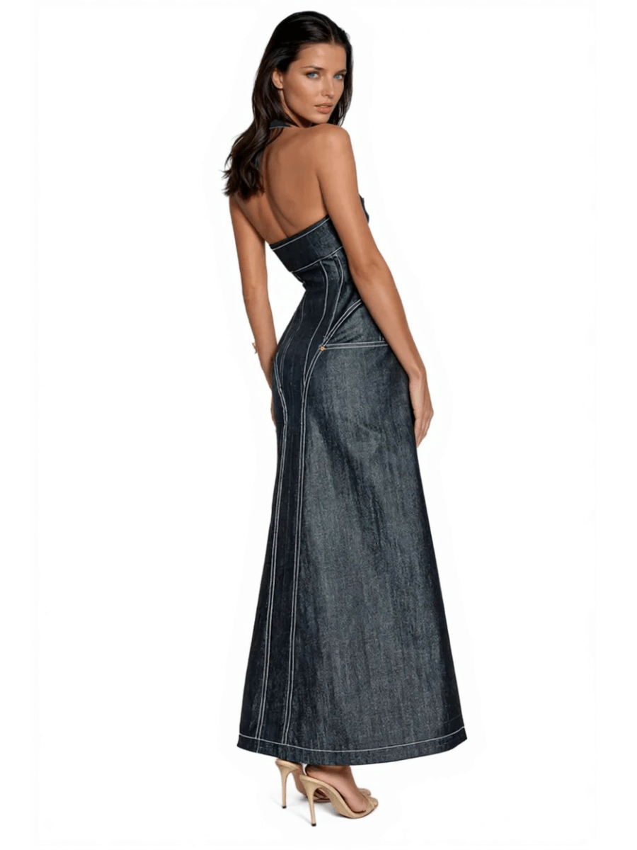 Halter Neck Denim Maxi Dress