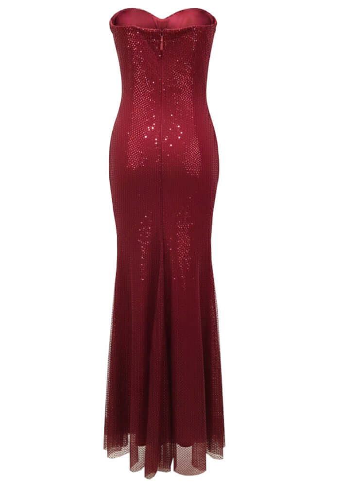 Burgundy Strapless Sequin Evening Gown